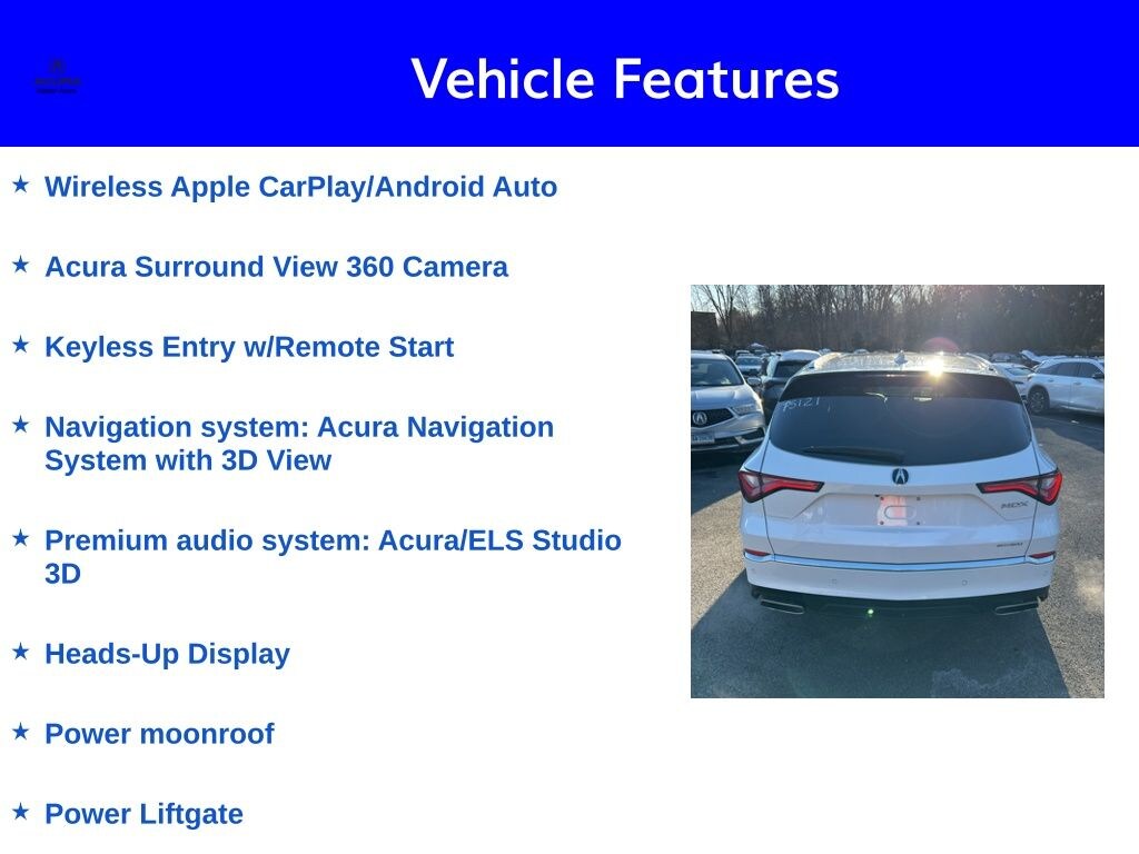 Step inside the MDX Advance and be enveloped in a world of premium luxury. The handcrafted interior features premium Milano leather-trimmed seats, a stunning Acura/ELS Studio 3D premium audio system, and a wealth of advanced technology to keep you connected and entertained. The Acura Navigation System with 3D View and Heads-Up Display provide seamless guidance, while the Surround View 360 Camera makes parking a breeze.