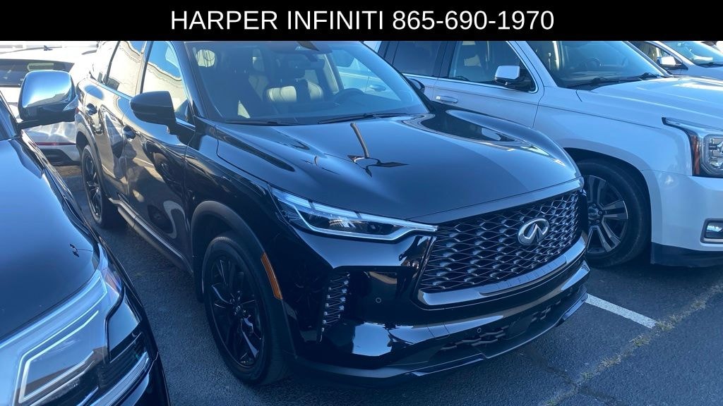 Harper INFINITI is very proud to offer this wonderful 2025 INFINITI QX60 in Mineral Black HARPER INFINITI believes in the quality of the vehicles we sell so well that we provide an UNLIMITED MILES, POWERTRAIN WARRANTY on every new and qualifying pre-owned vehicle it sells!!! This warranty is good at any ASE certified shop in the 48 continental United States!! Check out all these great options Navigation system: INFINITI InTouch Navigation, 3rd row seats: bench, 4-Wheel Disc Brakes, ABS brakes, Air Conditioning, Alloy wheels, AM/FM radio: SiriusXM, Auto High-beam Headlights, Auto tilt-away steering wheel, Auto-dimming Rear-View mirror, Automatic temperature control, Brake assist, Delay-off headlights, Driver door bin, Driver vanity mirror, Dual front impact airbags, Dual front side impact airbags, Electronic Stability Control, Exterior Parking Camera Rear, Four wheel independent suspension, Front anti-roll bar, Front Bucket Seats, Front dual zone A/C, Front reading lights, Fully automatic headlights, Garage door transmitter: HomeLink, Heated door mirrors, Heated front seats, Heated rear seats, Heated steering wheel, Illuminated entry, Knee airbag, Leather Shift Knob, Leather steering wheel, Leather-Appointed Seating Surfaces, Low tire pressure warning, Memory seat, Occupant sensing airbag, Outside temperature display, Overhead airbag, Overhead console, Panic alarm, Passenger door bin, Passenger vanity mirror, Power door mirrors, Power driver seat, Power Liftgate, Power moonroof, Power passenger seat, Power steering, Power windows, Radio data system, Rain sensing wipers, Rear air conditioning, Rear anti-roll bar, Rear reading lights, Rear side impact airbag, Rear window defroster, Rear window wiper, Reclining 3rd row seat, Remote keyless entry, Security system, Speed control, Speed-sensing steering, Speed-Sensitive Wipers, Split folding rear seat, Spoiler, Steering wheel memory, Steering wheel mounted audio controls, Tachometer, Telescoping steering wheel, Tilt steering wheel, Traction control, Trip computer, Turn signal indicator mirrors, and Variably intermittent wipers.