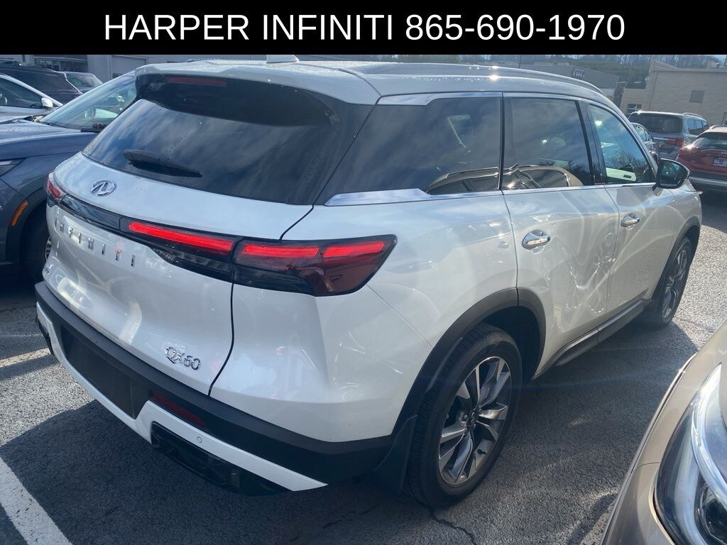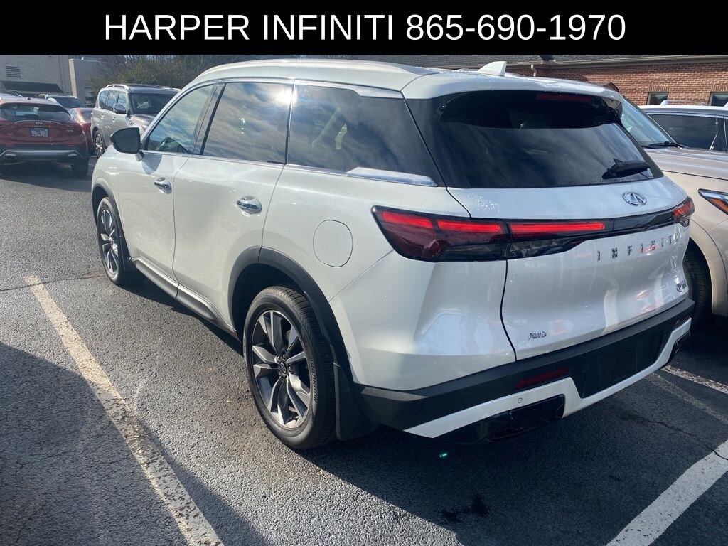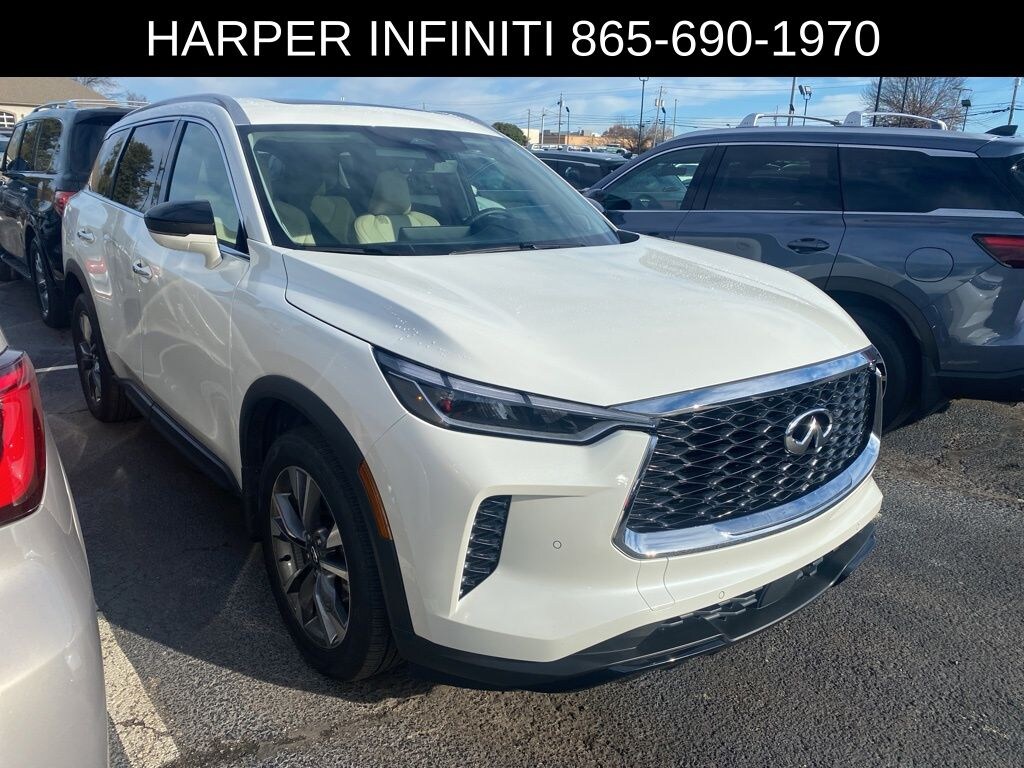 Harper INFINITI is pumped up to offer this good-looking 2025 INFINITI QX60 in Majestic White HARPER INFINITI believes in the quality of the vehicles we sell so well that we provide an UNLIMITED MILES, POWERTRAIN WARRANTY on every new and qualifying pre-owned vehicle it sells!!! This warranty is good at any ASE certified shop in the 48 continental United States!! Check out all these great options 17 Speakers, 3rd row seats: bench, 4-Wheel Disc Brakes, ABS brakes, Air Conditioning, Alloy wheels, AM/FM radio: SiriusXM, Anti-whiplash front head restraints, Apple CarPlay/Android Auto, Auto High-beam Headlights, Auto tilt-away steering wheel, Auto-dimming door mirrors, Auto-dimming Rear-View mirror, Automatic temperature control, Bose Performance Series 17-Speaker Sound System, Brake assist, Bumpers: body-color, Climate Controlled Front Bucket Seats, Delay-off headlights, Driver door bin, Driver vanity mirror, Dual front impact airbags, Dual front side impact airbags, Electronic Stability Control, Emergency communication system: INFINITI InTouch, Exterior Parking Camera Rear, Floor Mats w/Bench Seats on 3rd Row Tray, Four wheel independent suspension, Front anti-roll bar, Front Bucket Seats, Front Center Armrest, Front dual zone A/C, Front reading lights, Fully automatic headlights, Garage door transmitter: HomeLink, Heated door mirrors, Heated front seats, Heated rear seats, Heated steering wheel, Illuminated entry, Knee airbag, Leather Shift Knob, Leather steering wheel, Leather-Appointed Seating Surfaces, Literature Kit, Low tire pressure warning, Memory seat, Navigation system: INFINITI InTouch Navigation, Occupant sensing airbag, Outside temperature display, Overhead airbag, Overhead console, Panic alarm, Passenger door bin, Passenger vanity mirror, Power door mirrors, Power driver seat, Power Liftgate, Power moonroof, Power passenger seat, Power steering, Power windows, Premium Paint, Radio data system, Radio: Bose Performance Series, Rain sensing wipers, Rear air conditioning, Rear anti-roll bar, Rear reading lights, Rear seat center armrest, Rear side impact airbag, Rear window defroster, Rear window wiper, Reclining 3rd row seat, Remote keyless entry, Security system, Speed control, Speed-sensing steering, Speed-Sensitive Wipers, Splash Guards, Split folding rear seat, Spoiler, Steering wheel memory, Steering wheel mounted audio controls, Tachometer, Telescoping steering wheel, Tilt steering wheel, Traction control, Trip computer, Turn signal indicator mirrors, Variably intermittent wipers, Ventilated front seats, and Wheels: 20" x 8J Sporty Machined Aluminum Alloy.