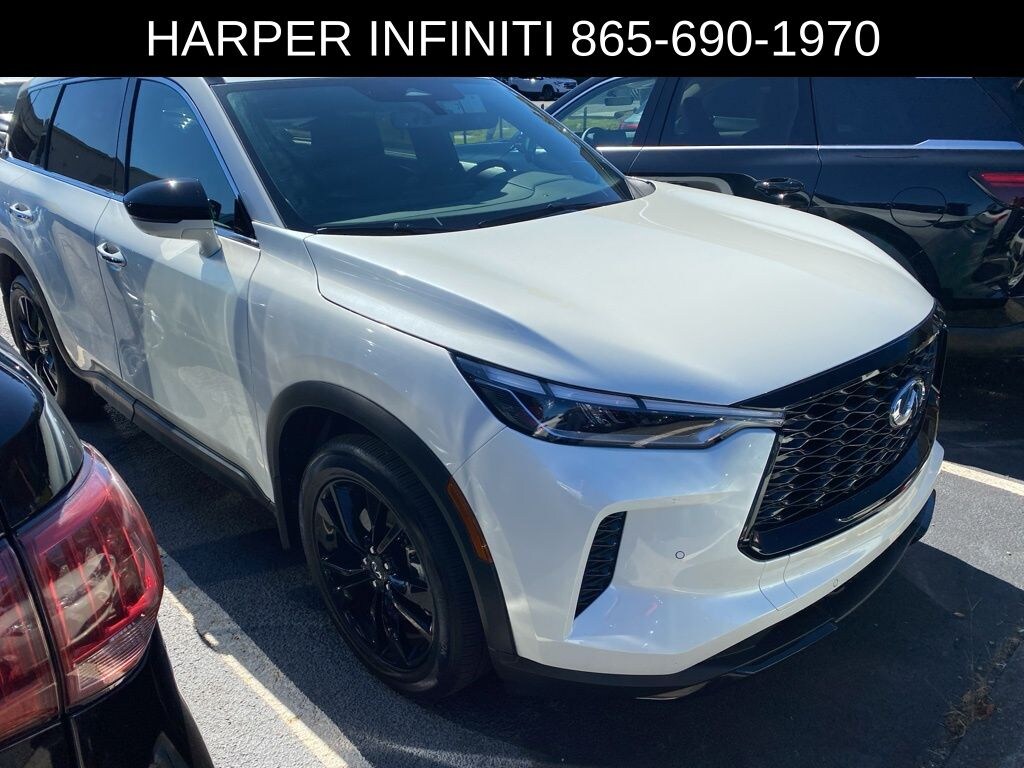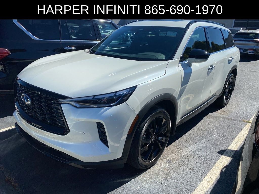 Harper INFINITI is pumped up to offer this beautiful 2025 INFINITI QX60 in Majestic White HARPER INFINITI believes in the quality of the vehicles we sell so well that we provide an UNLIMITED MILES, POWERTRAIN WARRANTY on every new and qualifying pre-owned vehicle it sells!!! This warranty is good at any ASE certified shop in the 48 continental United States!! Check out all these great options 3rd row seats: bench, 4-Wheel Disc Brakes, ABS brakes, Air Conditioning, Alloy wheels, AM/FM radio: SiriusXM, Auto High-beam Headlights, Auto tilt-away steering wheel, Auto-dimming Rear-View mirror, Automatic temperature control, Brake assist, Delay-off headlights, Driver door bin, Driver vanity mirror, Dual front impact airbags, Dual front side impact airbags, Electronic Stability Control, Exterior Parking Camera Rear, Four wheel independent suspension, Front anti-roll bar, Front Bucket Seats, Front dual zone A/C, Front reading lights, Fully automatic headlights, Garage door transmitter: HomeLink, Heated door mirrors, Heated front seats, Heated rear seats, Heated steering wheel, Illuminated entry, Knee airbag, Leather Shift Knob, Leather steering wheel, Leather-Appointed Seating Surfaces, Low tire pressure warning, Memory seat, Navigation system: INFINITI InTouch Navigation, Occupant sensing airbag, Outside temperature display, Overhead airbag, Overhead console, Panic alarm, Passenger door bin, Passenger vanity mirror, Power door mirrors, Power driver seat, Power Liftgate, Power moonroof, Power passenger seat, Power steering, Power windows, Radio data system, Rain sensing wipers, Rear air conditioning, Rear anti-roll bar, Rear reading lights, Rear side impact airbag, Rear window defroster, Rear window wiper, Reclining 3rd row seat, Remote keyless entry, Security system, Speed control, Speed-sensing steering, Speed-Sensitive Wipers, Split folding rear seat, Spoiler, Steering wheel memory, Steering wheel mounted audio controls, Tachometer, Telescoping steering wheel, Tilt steering wheel, Traction control, Trip computer, Turn signal indicator mirrors, and Variably intermittent wipers.