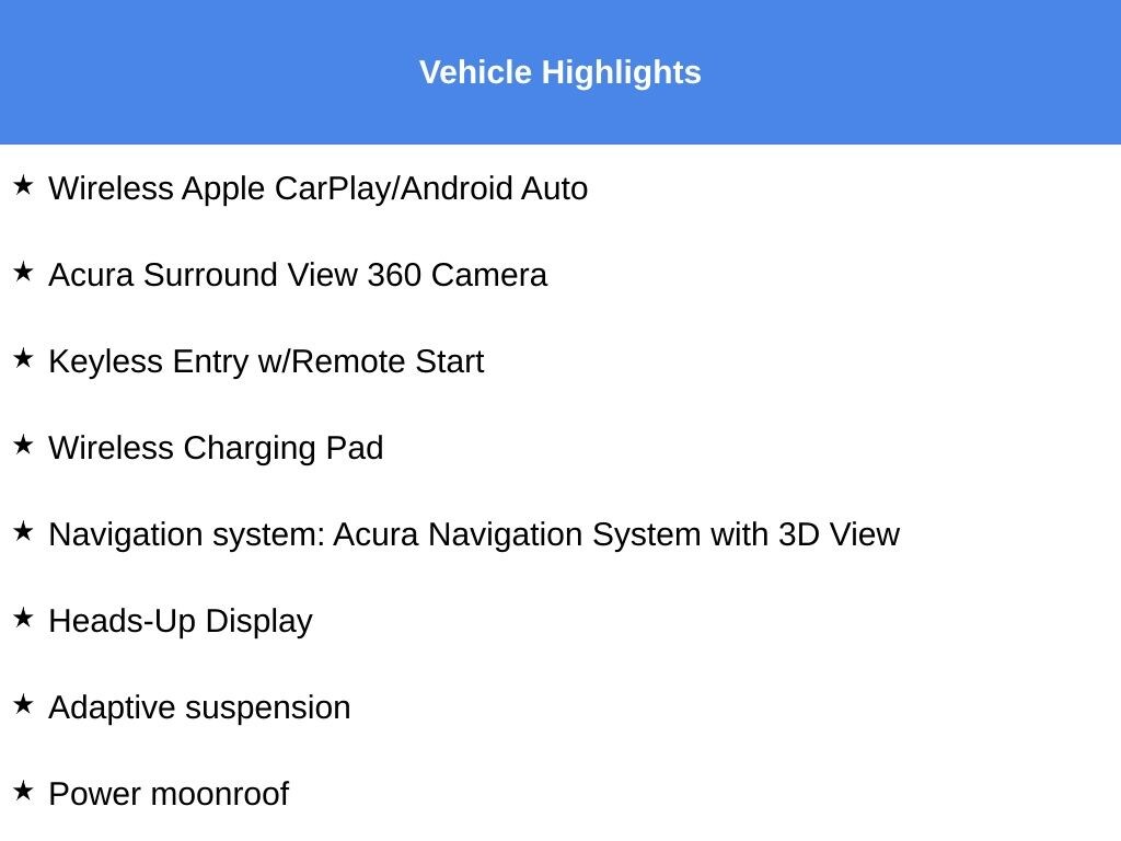 • Navigation system: Acura Navigation System with 3D View