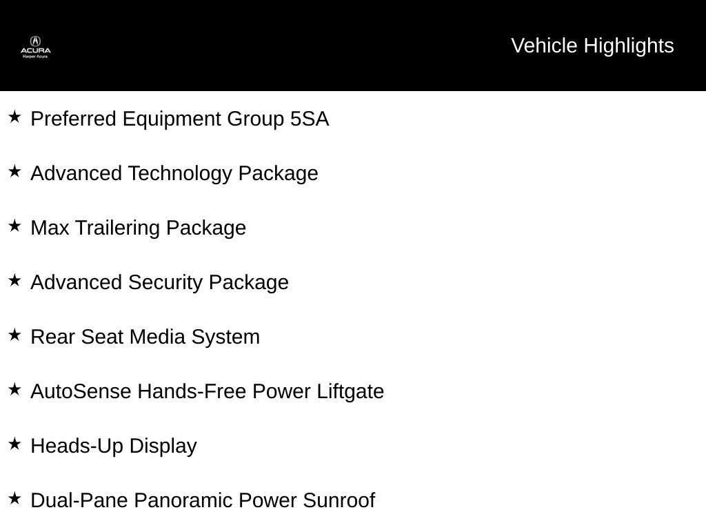 HARPER ACURA believes in the quality of the vehicles we sell so well that we provide an UNLIMITED MILES POWERTRAIN WARRANTY on every new and qualifying pre-owned vehicle it sells!!! This warranty is good at any ASE certified shop in the 48 continental United States!! Check out all these great options Advanced Security Package (Glass Breakage Sensor, Theft-Deterrent Alarm System, Vehicle Inclination Sensor, and Vehicle Interior Movement Sensor), Advanced Technology Package (Rear Seat Media System, Super Cruise, 3 Years OnStar One (R9M), Driver Attention Assist, and Inside Rearview Auto-Dimming Rear Camera Mirror), Max Trailering Package (Blind Zone Steering Assist w/Trailering, Extra Capacity Cooling System, Hill Descent Control, Hitch View, Integrated Trailer Brake Controller, and Smart Trailer Integration Indicator), Preferred Equipment Group 5SA (15" Diagonal Multi-Color Head-Up Display, AutoSense Hands-Free Power Liftgate, Perforated Heated & Ventilated Dr & Frt Pass Seats, Power Release 2nd Row Bucket Seats, 4-Way Power Driver Lumbar Seat Adjuster, 4-Way Power Front Passenger Lumbar Seat Adjuster, Bright Front & Rear Door Sill Plates, Dual Exhaust System, Galvano Bodyside Moldings, and Power Tilt & Telescopic Steering Column), Dual-Pane Panoramic Power Sunroof, Heads-Up Display, 10 Speakers, 3.23 Rear Axle Ratio, 3rd row seats: split-bench, 4-Wheel Disc Brakes, ABS brakes, Adaptive suspension, Air Conditioning, Alloy wheels, AM/FM radio: SiriusXM with 360L, Apple CarPlay/Android Auto, Audio memory, Auto High-beam Headlights, Auto-dimming door mirrors, Auto-dimming Rear-View mirror, Auto-leveling suspension, Automatic temperature control, Bodyside moldings, Bose 10-Speaker Surround w/CenterPoint, Brake assist, Bumpers: body-color, Compass, Delay-off headlights, Driver door bin, Driver vanity mirror, Dual front impact airbags, Dual front side impact airbags, Electronic Stability Control, Emergency communication system: OnStar and GMC connected services capable, Exterior Parking Camera Rear, Four wheel independent suspension, Front anti-roll bar, Front Bucket Seats, Front Center Armrest, Front dual zone A/C, Front fog lights, Front reading lights, Fully automatic headlights, Garage door transmitter, Heated door mirrors, Heated Driver & Front Passenger Seats, Heated front seats, Heated rear seats, Heated steering wheel, Illuminated entry, Low tire pressure warning, Magnetic Ride Control Suspension, Memory seat, Navigation system: GMC Connected Navigation, Occupant sensing airbag, Outside temperature display, Overhead airbag, Overhead console, Panic alarm, Passenger door bin, Passenger vanity mirror, Perforated Leather Seating Surfaces, Power door mirrors, Power driver seat, Power Liftgate, Power passenger seat, Power steering, Power windows, Radio: 16.8" Diagonal Premium GMC Infotainment Sys, Rain sensing wipers, Rear air conditioning, Rear anti-roll bar, Rear reading lights, Rear window defroster, Rear window wiper, Remote keyless entry, Security system, SiriusXM w/360L, Speed control, Speed-sensing steering, Split folding rear seat, Spoiler, Steering wheel memory, Steering wheel mounted audio controls, Tachometer, Telescoping steering wheel, Tilt steering wheel, Traction control, Trip computer, Turn signal indicator mirrors, Variably intermittent wipers, Ventilated front seats, Voltmeter, and Wheels: 20" x 9" 6-Spoke Polished Aluminum.