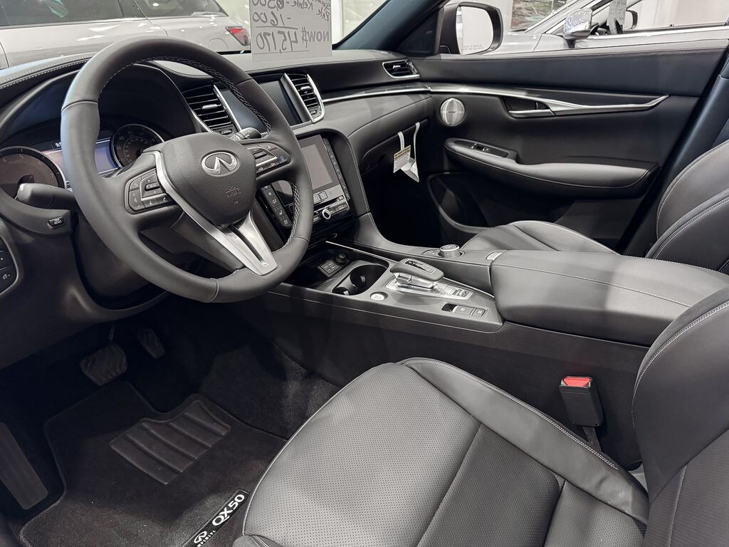 Harper INFINITI is excited to offer this great 2025 INFINITI QX50 in Black Obsidian HARPER INFINITI believes in the quality of the vehicles we sell so well that we provide an UNLIMITED MILES, POWERTRAIN WARRANTY on every new and qualifying pre-owned vehicle it sells!!! This warranty is good at any ASE certified shop in the 48 continental United States!! Check out all these great options 12 Speakers, 4-Wheel Disc Brakes, ABS brakes, Air Conditioning, Alloy wheels, AM/FM radio: SiriusXM, Auto High-beam Headlights, Auto-dimming Rear-View mirror, Automatic temperature control, Bose Premium Audio System, Brake assist, Bumpers: body-color, CD player, Climate Controlled Front Bucket Seats, Delay-off headlights, Driver door bin, Driver vanity mirror, Dual front impact airbags, Dual front side impact airbags, Electronic Stability Control, Emergency communication system: INFINITI InTouch (1-year complimentary trial), Exterior Parking Camera Rear, Floor Mats, Four wheel independent suspension, Front anti-roll bar, Front Bucket Seats, Front Center Armrest, Front dual zone A/C, Front fog lights, Front reading lights, Fully automatic headlights, Garage door transmitter: HomeLink, Heated door mirrors, Heated front seats, Heated steering wheel, Illuminated entry, Illuminated Kick Plates, Knee airbag, Leather Shift Knob, Leather steering wheel, Literature Kit, Low tire pressure warning, Memory seat, Navigation system: INFINITI InTouch Navigation, Occupant sensing airbag, Outside temperature display, Overhead airbag, Overhead console, Panic alarm, Passenger door bin, Passenger vanity mirror, Power door mirrors, Power driver seat, Power Liftgate, Power moonroof, Power passenger seat, Power steering, Power windows, Radio data system, Rear anti-roll bar, Rear reading lights, Rear seat center armrest, Rear side impact airbag, Rear window defroster, Rear window wiper, Remote keyless entry, Security system, Semi-Aniline Leather-Appointed Seat Trim, Speed control, Speed-sensing steering, Speed-Sensitive Wipers, Splash Guards (Set of 4), Split folding rear seat, Spoiler, Steering wheel mounted audio controls, Tachometer, Telescoping steering wheel, Tilt steering wheel, Traction control, Trip computer, Turn signal indicator mirrors, Variably intermittent wipers, Ventilated front seats, and Wheels: 20" Dark-Painted Machine-Finished Alloy. 22/28 City/Highway MPG