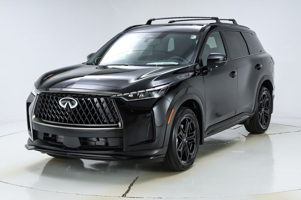 Harper INFINITI is pumped up to offer this attractive-looking 2026 INFINITI QX60 in Mineral Black HARPER INFINITI believes in the quality of the vehicles we sell so well that we provide an UNLIMITED MILES, POWERTRAIN WARRANTY on every new and qualifying pre-owned vehicle it sells!!! This warranty is good at any ASE certified shop in the 48 continental United States!! Check out all these great options Dark Cargo Package (Black Rear Bumper Film, Cargo Blocks, Cargo Mat, and Medic Kit), 17 Speakers, 3rd row seats: bench, 4-Wheel Disc Brakes, ABS brakes, Air Conditioning, Alloy wheels, AM/FM radio: SiriusXM with 360L, Anti-whiplash front head restraints, Apple CarPlay/Android Auto, Auto High-beam Headlights, Auto tilt-away steering wheel, Auto-dimming door mirrors, Auto-dimming Rear-View mirror, Automatic temperature control, Black Roof Rail Crossbars, Bose Performance Series 17-Speaker Sound System, Brake assist, Bumpers: body-color, Climate Controlled Front Bucket Seats, Delay-off headlights, Driver door bin, Driver vanity mirror, Dual front impact airbags, Dual front side impact airbags, Electronic Stability Control, Emergency communication system: INFINITI InTouch, Four wheel independent suspension, Front anti-roll bar, Front Bucket Seats, Front Center Armrest, Front dual zone A/C, Front reading lights, Fully automatic headlights, Garage door transmitter: HomeLink, Genuine wood door panel insert, Heated door mirrors, Heated front seats, Heated rear seats, Heated steering wheel, Illuminated entry, INFINITI Radiant Dark Illuminated Kick Plates, Knee airbag, Leather Shift Knob, Leather steering wheel, Low tire pressure warning, Memory seat, Navigation system: Google Built-in, Occupant sensing airbag, Outside temperature display, Overhead airbag, Overhead console, Panic alarm, Passenger door bin, Passenger vanity mirror, Power door mirrors, Power driver seat, Power Liftgate, Power moonroof: Panoramic, Power passenger seat, Power steering, Power windows, Premium Paint, Radio data system, Radio: Klipsch Premium Audio System, Rain sensing wipers, Rear air conditioning, Rear anti-roll bar, Rear reading lights, Rear side impact airbag, Rear window defroster, Rear window wiper, Reclining 3rd row seat, Remote keyless entry, Security system, Speed control, Speed-sensing steering, Speed-Sensitive Wipers, Splash Guards, Split folding rear seat, Spoiler, Steering wheel memory, Steering wheel mounted audio controls, Tachometer, Tailorfit-Appointed Seating Surfaces, Telescoping steering wheel, Tilt steering wheel, Traction control, Trip computer, Turn signal indicator mirrors, Variably intermittent wipers, Ventilated front seats, and Wheels: 20" x 8J Unique Sporty Machined Aluminum Alloy. Recent Arrival! 22/27 City/Highway MPG
