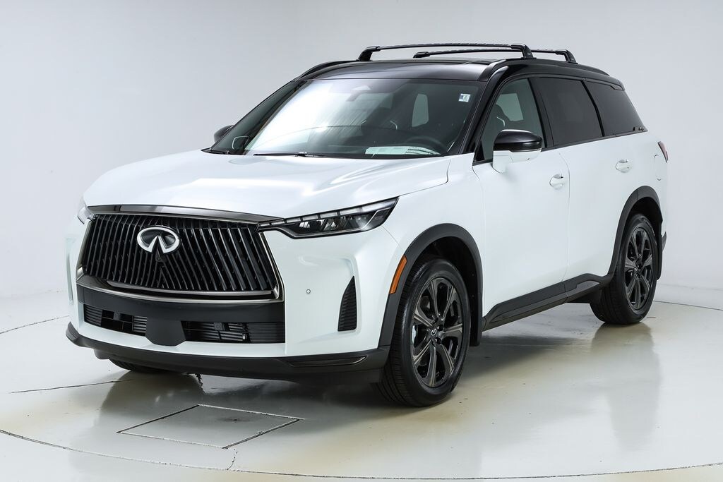 Harper INFINITI is very proud to offer this good-looking 2026 INFINITI QX60 in Radiant White/Black Obsidian HARPER INFINITI believes in the quality of the vehicles we sell so well that we provide an UNLIMITED MILES, POWERTRAIN WARRANTY on every new and qualifying pre-owned vehicle it sells!!! This warranty is good at any ASE certified shop in the 48 continental United States!! Check out all these great options Dark Cargo Package (Black Rear Bumper Film, Cargo Blocks, Cargo Mat, Cargo Net, and Medic Kit), 2-Tone Super Premium Paint, 20 Speakers, 3rd row seats: bench, 4-Wheel Disc Brakes, ABS brakes, Air Conditioning, Alloy wheels, AM/FM radio: SiriusXM with 360L, Anti-whiplash front head restraints, Apple CarPlay/Android Auto, Auto High-beam Headlights, Auto tilt-away steering wheel, Auto-dimming door mirrors, Auto-dimming Rear-View mirror, Automatic temperature control, Black Roof Rail Crossbars, Bose Performance Series 17-Speaker Sound System, Brake assist, Bumpers: body-color, Climate Controlled Massaging Front Bucket Seats, Delay-off headlights, Driver door bin, Driver vanity mirror, Dual front impact airbags, Dual front side impact airbags, Electronic Stability Control, Emergency communication system: INFINITI InTouch, Four wheel independent suspension, Front anti-roll bar, Front Bucket Seats, Front Center Armrest, Front dual zone A/C, Front reading lights, Fully automatic headlights, Garage door transmitter: HomeLink, Genuine wood door panel insert, Heads-Up Display, Heated door mirrors, Heated front seats, Heated rear seats, Heated steering wheel, Illuminated entry, INFINITI Radiant Dark Illuminated Cargo Scuff Plates, Knee airbag, Leather Shift Knob, Leather steering wheel, Low tire pressure warning, Memory seat, Navigation system: Google Built-in, Occupant sensing airbag, Outside temperature display, Overhead airbag, Overhead console, Panic alarm, Passenger door bin, Passenger vanity mirror, Power door mirrors, Power driver seat, Power Liftgate, Power moonroof: Panoramic, Power passenger seat, Power steering, Power windows, Radio data system, Radio: Klipsch Premiere Audio System, Rain sensing wipers, Rear air conditioning, Rear anti-roll bar, Rear reading lights, Rear side impact airbag, Rear window defroster, Rear window wiper, Reclining 3rd row seat, Remote keyless entry, Security system, Semi Aniline Leather-Appointed Seating Surfaces, Speed control, Speed-sensing steering, Speed-Sensitive Wipers, Splash Guards, Split folding rear seat, Spoiler, Steering wheel memory, Steering wheel mounted audio controls, Tachometer, Telescoping steering wheel, Tilt steering wheel, Traction control, Trip computer, Turn signal indicator mirrors, Variably intermittent wipers, Ventilated front seats, and Wheels: 20" x 8J Luxury Machined Aluminum Alloy. 22/27 City/Highway MPG