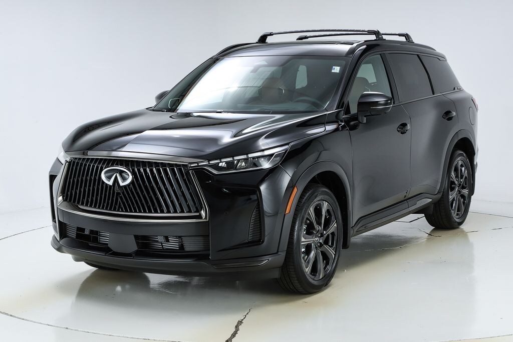 Harper INFINITI is excited to offer this great 2026 INFINITI QX60 in Mineral Black HARPER INFINITI believes in the quality of the vehicles we sell so well that we provide an UNLIMITED MILES, POWERTRAIN WARRANTY on every new and qualifying pre-owned vehicle it sells!!! This warranty is good at any ASE certified shop in the 48 continental United States!! Check out all these great options Dark Cargo Package (Black Rear Bumper Film, Cargo Blocks, Cargo Mat, Cargo Net, and Medic Kit), 20 Speakers, 3rd row seats: bench, 4-Wheel Disc Brakes, ABS brakes, Air Conditioning, Alloy wheels, AM/FM radio: SiriusXM with 360L, Anti-whiplash front head restraints, Apple CarPlay/Android Auto, Auto High-beam Headlights, Auto tilt-away steering wheel, Auto-dimming door mirrors, Auto-dimming Rear-View mirror, Automatic temperature control, Black Roof Rail Crossbars, Bose Performance Series 17-Speaker Sound System, Brake assist, Bumpers: body-color, Climate Controlled Massaging Front Bucket Seats, Delay-off headlights, Driver door bin, Driver vanity mirror, Dual front impact airbags, Dual front side impact airbags, Electronic Stability Control, Emergency communication system: INFINITI InTouch, Four wheel independent suspension, Front anti-roll bar, Front Bucket Seats, Front Center Armrest, Front dual zone A/C, Front reading lights, Fully automatic headlights, Garage door transmitter: HomeLink, Genuine wood door panel insert, Heads-Up Display, Heated door mirrors, Heated front seats, Heated rear seats, Heated steering wheel, Illuminated entry, INFINITI Radiant Dark Illuminated Cargo Scuff Plates, Knee airbag, Leather Shift Knob, Leather steering wheel, Low tire pressure warning, Memory seat, Navigation system: Google Built-in, Occupant sensing airbag, Outside temperature display, Overhead airbag, Overhead console, Panic alarm, Passenger door bin, Passenger vanity mirror, Power door mirrors, Power driver seat, Power Liftgate, Power moonroof: Panoramic, Power passenger seat, Power steering, Power windows, Premium Paint, Radio data system, Radio: Klipsch Premiere Audio System, Rain sensing wipers, Rear air conditioning, Rear anti-roll bar, Rear reading lights, Rear side impact airbag, Rear window defroster, Rear window wiper, Reclining 3rd row seat, Remote keyless entry, Security system, Semi Aniline Leather-Appointed Seating Surfaces, Speed control, Speed-sensing steering, Speed-Sensitive Wipers, Splash Guards, Split folding rear seat, Spoiler, Steering wheel memory, Steering wheel mounted audio controls, Tachometer, Telescoping steering wheel, Tilt steering wheel, Traction control, Trip computer, Turn signal indicator mirrors, Variably intermittent wipers, Ventilated front seats, and Wheels: 20" x 8J Luxury Machined Aluminum Alloy. 22/27 City/Highway MPG