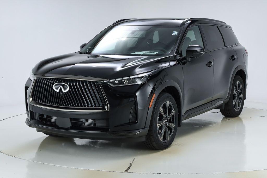 Harper INFINITI is pleased to offer this superb-looking 2026 INFINITI QX60 in Mineral Black HARPER INFINITI believes in the quality of the vehicles we sell so well that we provide an UNLIMITED MILES, POWERTRAIN WARRANTY on every new and qualifying pre-owned vehicle it sells!!! This warranty is good at any ASE certified shop in the 48 continental United States!! Check out all these great options Dark Cargo Package (Black Rear Bumper Film, Cargo Blocks, Cargo Mat, Cargo Net, and Medic Kit), 20 Speakers, 3rd row seats: bench, 4-Wheel Disc Brakes, ABS brakes, Air Conditioning, Alloy wheels, AM/FM radio: SiriusXM with 360L, Anti-whiplash front head restraints, Apple CarPlay/Android Auto, Auto High-beam Headlights, Auto tilt-away steering wheel, Auto-dimming door mirrors, Auto-dimming Rear-View mirror, Automatic temperature control, Black Roof Rail Crossbars, Bose Performance Series 17-Speaker Sound System, Brake assist, Bumpers: body-color, Climate Controlled Massaging Front Bucket Seats, Delay-off headlights, Driver door bin, Driver vanity mirror, Dual front impact airbags, Dual front side impact airbags, Electronic Stability Control, Emergency communication system: INFINITI InTouch, Four wheel independent suspension, Front anti-roll bar, Front Bucket Seats, Front Center Armrest, Front dual zone A/C, Front reading lights, Fully automatic headlights, Garage door transmitter: HomeLink, Genuine wood door panel insert, Heads-Up Display, Heated door mirrors, Heated front seats, Heated rear seats, Heated steering wheel, Illuminated entry, Knee airbag, Leather Shift Knob, Leather steering wheel, Low tire pressure warning, Memory seat, Navigation system: Google Built-in, Occupant sensing airbag, Outside temperature display, Overhead airbag, Overhead console, Panic alarm, Passenger door bin, Passenger vanity mirror, Power door mirrors, Power driver seat, Power Liftgate, Power moonroof: Panoramic, Power passenger seat, Power steering, Power windows, Premium Paint, Radio data system, Radio: Klipsch Reference Premiere Audio System, Rain sensing wipers, Rear air conditioning, Rear anti-roll bar, Rear reading lights, Rear side impact airbag, Rear window defroster, Rear window wiper, Reclining 3rd row seat, Remote keyless entry, Security system, Semi Aniline Leather-Appointed Seating Surfaces, Speed control, Speed-sensing steering, Speed-Sensitive Wipers, Splash Guards (B92), Split folding rear seat, Spoiler, Steering wheel memory, Steering wheel mounted audio controls, Tachometer, Telescoping steering wheel, Tilt steering wheel, Traction control, Trip computer, Turn signal indicator mirrors, Variably intermittent wipers, Ventilated front seats, and Wheels: 20" x 8J Luxury Machined Aluminum Alloy. 22/27 City/Highway MPG