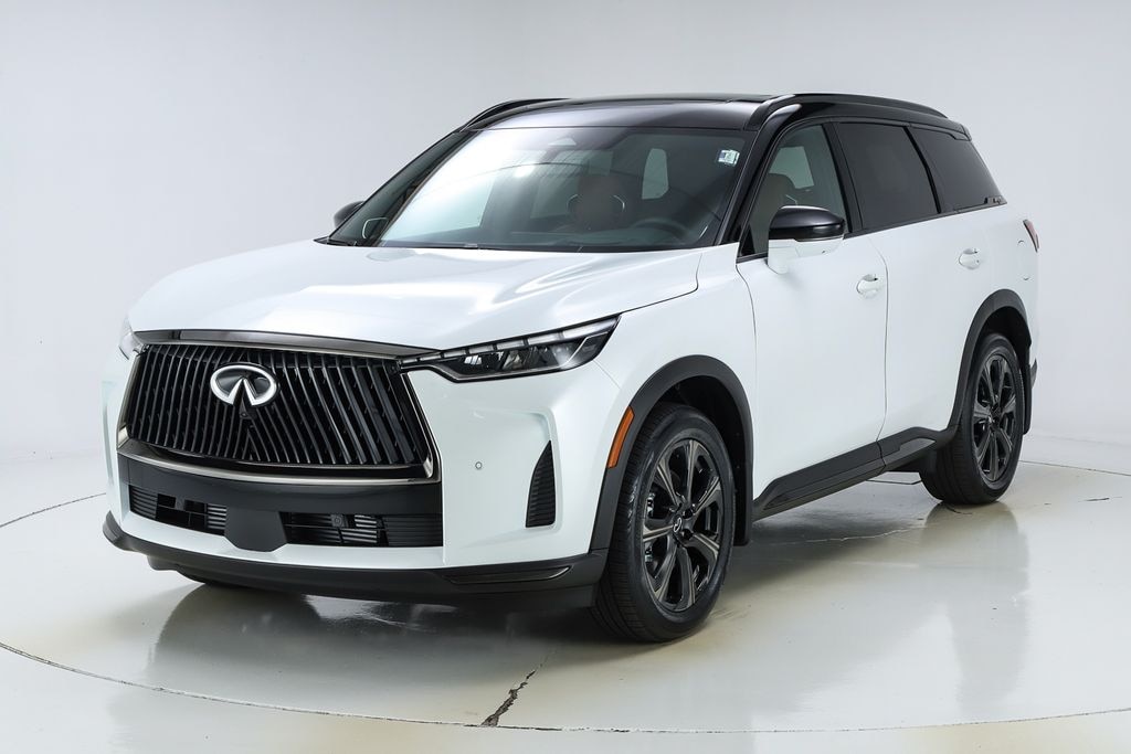 Harper INFINITI is proud to offer this terrific-looking 2026 INFINITI QX60 in Radiant White/Black Obsidian HARPER INFINITI believes in the quality of the vehicles we sell so well that we provide an UNLIMITED MILES, POWERTRAIN WARRANTY on every new and qualifying pre-owned vehicle it sells!!! This warranty is good at any ASE certified shop in the 48 continental United States!! Check out all these great options Dark Cargo Package (Black Rear Bumper Film, Cargo Blocks, Cargo Mat, Cargo Net, and Medic Kit), 2-Tone Super Premium Paint, 20 Speakers, 3rd row seats: bench, 4-Wheel Disc Brakes, ABS brakes, Air Conditioning, Alloy wheels, AM/FM radio: SiriusXM with 360L, Anti-whiplash front head restraints, Apple CarPlay/Android Auto, Auto High-beam Headlights, Auto tilt-away steering wheel, Auto-dimming door mirrors, Auto-dimming Rear-View mirror, Automatic temperature control, Bose Performance Series 17-Speaker Sound System, Brake assist, Bumpers: body-color, Climate Controlled Massaging Front Bucket Seats, Delay-off headlights, Driver door bin, Driver vanity mirror, Dual front impact airbags, Dual front side impact airbags, Electronic Stability Control, Emergency communication system: INFINITI InTouch, Four wheel independent suspension, Front anti-roll bar, Front Bucket Seats, Front Center Armrest, Front dual zone A/C, Front reading lights, Fully automatic headlights, Garage door transmitter: HomeLink, Genuine wood door panel insert, Heads-Up Display, Heated door mirrors, Heated front seats, Heated rear seats, Heated steering wheel, Illuminated entry, Knee airbag, Leather Shift Knob, Leather steering wheel, Low tire pressure warning, Memory seat, Navigation system: Google Built-in, Occupant sensing airbag, Outside temperature display, Overhead airbag, Overhead console, Panic alarm, Passenger door bin, Passenger vanity mirror, Power door mirrors, Power driver seat, Power Liftgate, Power moonroof: Panoramic, Power passenger seat, Power steering, Power windows, Radio data system, Radio: Klipsch Reference Premiere Audio System, Rain sensing wipers, Rear air conditioning, Rear anti-roll bar, Rear reading lights, Rear side impact airbag, Rear window defroster, Rear window wiper, Reclining 3rd row seat, Remote keyless entry, Security system, Semi Aniline Leather-Appointed Seating Surfaces, Speed control, Speed-sensing steering, Speed-Sensitive Wipers, Splash Guards (B92), Split folding rear seat, Spoiler, Steering wheel memory, Steering wheel mounted audio controls, Tachometer, Telescoping steering wheel, Tilt steering wheel, Traction control, Trip computer, Turn signal indicator mirrors, Variably intermittent wipers, Ventilated front seats, and Wheels: 20" x 8J Luxury Machined Aluminum Alloy. 22/27 City/Highway MPG