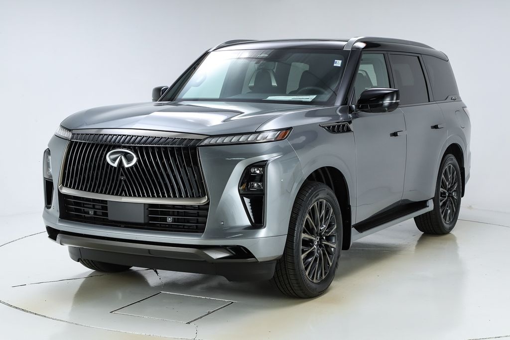 Harper INFINITI is proud to offer this fantastic 2026 INFINITI QX80 in Dynamic Metal/Black Obsidian HARPER INFINITI believes in the quality of the vehicles we sell so well that we provide an UNLIMITED MILES, POWERTRAIN WARRANTY on every new and qualifying pre-owned vehicle it sells!!! This warranty is good at any ASE certified shop in the 48 continental United States!! Check out all these great options Premium Cargo Package (Cargo Blocks/Stabilizers, Cargo Shelf/Barrier, Carpeted Cargo Area Protector, Console Net, and Soft-Sided Cargo Cooler), 3rd row seats: bench, 4-Wheel Disc Brakes, ABS brakes, Adaptive suspension, Air Conditioning, Alloy wheels, AM/FM radio: SiriusXM with 360L, Anti-whiplash front head restraints, Apple CarPlay/Android Auto, Audio memory, Auto High-beam Headlights, Auto tilt-away steering wheel, Auto-dimming door mirrors, Auto-dimming Rear-View mirror, Auto-leveling suspension, Automatic temperature control, Brake assist, Bumpers: body-color, Compass, Delay-off headlights, Driver door bin, Driver vanity mirror, Dual front impact airbags, Dual front side impact airbags, Electronic Stability Control, Emergency communication system: INFINITI InTouch, Four wheel independent suspension, Front anti-roll bar, Front Bucket Seats, Front Center Armrest, Front dual zone A/C, Front reading lights, Fully automatic headlights, Garage door transmitter: myQ Connected Garage, Genuine wood dashboard insert, Genuine wood door panel insert, Heads-Up Display, Heated and Climate Controlled Front Bucket Seats with Massage, Heated door mirrors, Heated front seats, Heated rear seats, Heated steering wheel, HVAC memory, Illuminated entry, Knee airbag, Leather steering wheel, Low tire pressure warning, Memory seat, Navigation system: Google Built-in, Occupant sensing airbag, Outside temperature display, Overhead airbag, Overhead console, Panic alarm, Passenger door bin, Passenger vanity mirror, Power door mirrors, Power driver seat, Power Liftgate, Power moonroof, Power passenger seat, Power steering, Power windows, Radio data system, Radio: Klipsch Premiere Audio System, Rain sensing wipers, Rear air conditioning, Rear anti-roll bar, Rear reading lights, Rear seat center armrest, Rear window defroster, Rear window wiper, Reclining 3rd row seat, Remote keyless entry, Security system, Semi-Aniline Premium Leather Seating Surfaces, Speed control, Speed-sensing steering, Splash Guards, Split folding rear seat, Spoiler, Steering wheel memory, Steering wheel mounted audio controls, Tachometer, Telescoping steering wheel, Tilt steering wheel, Traction control, Trip computer, Turn signal indicator mirrors, Two-Tone Premium Paint, Variably intermittent wipers, Ventilated front seats, Ventilated rear seats, and Wheels: 22" x 8.5J Cast Aluminum-Alloy.