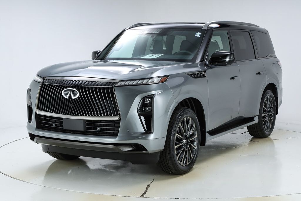 Harper INFINITI is pleased to offer this gorgeous-looking 2026 INFINITI QX80 in Dynamic Metal/Black Obsidian HARPER INFINITI believes in the quality of the vehicles we sell so well that we provide an UNLIMITED MILES, POWERTRAIN WARRANTY on every new and qualifying pre-owned vehicle it sells!!! This warranty is good at any ASE certified shop in the 48 continental United States!! Check out all these great options Premium Cargo Package (Cargo Blocks/Stabilizers, Cargo Shelf/Barrier, Carpeted Cargo Area Protector, Console Net, and Soft-Sided Cargo Cooler), 3rd row seats: bench, 4-Wheel Disc Brakes, ABS brakes, Adaptive suspension, Air Conditioning, Alloy wheels, AM/FM radio: SiriusXM with 360L, Anti-whiplash front head restraints, Apple CarPlay/Android Auto, Audio memory, Auto High-beam Headlights, Auto tilt-away steering wheel, Auto-dimming door mirrors, Auto-dimming Rear-View mirror, Auto-leveling suspension, Automatic temperature control, Brake assist, Bumpers: body-color, Compass, Delay-off headlights, Driver door bin, Driver vanity mirror, Dual front impact airbags, Dual front side impact airbags, Electronic Stability Control, Emergency communication system: INFINITI InTouch, Four wheel independent suspension, Front anti-roll bar, Front Bucket Seats, Front Center Armrest, Front dual zone A/C, Front reading lights, Fully automatic headlights, Garage door transmitter: myQ Connected Garage, Genuine wood dashboard insert, Genuine wood door panel insert, Heads-Up Display, Heated and Climate Controlled Front Bucket Seats with Massage, Heated door mirrors, Heated front seats, Heated rear seats, Heated steering wheel, HVAC memory, Illuminated entry, Knee airbag, Leather steering wheel, Low tire pressure warning, Memory seat, Navigation system: Google Built-in, Occupant sensing airbag, Outside temperature display, Overhead airbag, Overhead console, Panic alarm, Passenger door bin, Passenger vanity mirror, Power door mirrors, Power driver seat, Power Liftgate, Power moonroof, Power passenger seat, Power steering, Power windows, Radio data system, Radio: Klipsch Premiere Audio System, Rain sensing wipers, Rear air conditioning, Rear anti-roll bar, Rear reading lights, Rear seat center armrest, Rear window defroster, Rear window wiper, Reclining 3rd row seat, Remote keyless entry, Security system, Semi-Aniline Premium Leather Seating Surfaces, Speed control, Speed-sensing steering, Splash Guards, Split folding rear seat, Spoiler, Steering wheel memory, Steering wheel mounted audio controls, Tachometer, Telescoping steering wheel, Tilt steering wheel, Traction control, Trip computer, Turn signal indicator mirrors, Two-Tone Premium Paint, Variably intermittent wipers, Ventilated front seats, Ventilated rear seats, and Wheels: 22" x 8.5J Cast Aluminum-Alloy.
