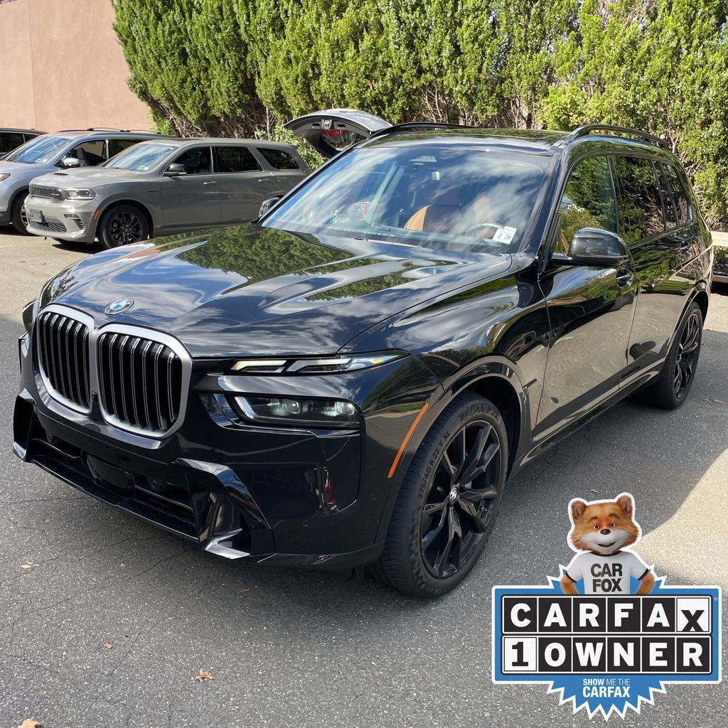 CARFAX One-Owner. Black Sapphire Metallic 2024 BMW X7 xDrive40i 2024 BMW X7 xDrive40i 8-Speed Automatic Sport 3.0L I6 DOHC 24V 2024 BMW X7 xDrive40i in Black Sapphire Metallic, 3rd row seats: split-bench, Aerodynamic Kit, Connected Package Pro, Drive Recorder, Front & Rear Heated Seats, Front Ventilated Seats, Heads-Up Display, Heated steering wheel, Increased Top Speed Limiter, M Sport Package, M Sport Package (337), Parking Assistance Package, Parking Assistant Professional, Power moonroof: Panorama, Shadowline Exterior Trim, Surround View w/3D View, Wheels: 22" x 9.5" Fr & 22" x 10.5" Rr V-Spoke.