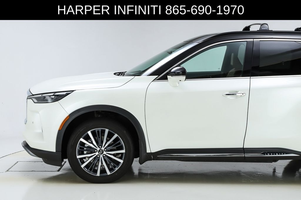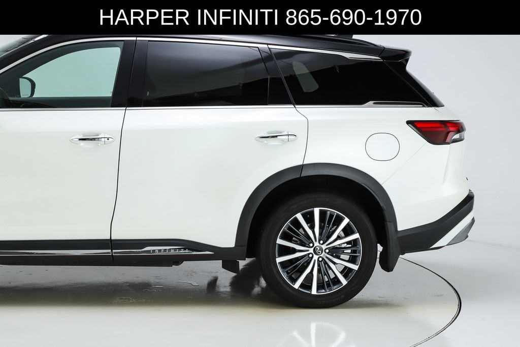 Harper INFINITI is excited to offer this fantastic-looking 2024 INFINITI QX60 in Majestic White/Black Obsidian HARPER INFINITI believes in the quality of the vehicles we sell so well that we provide an UNLIMITED MILES, POWERTRAIN WARRANTY on every new and qualifying pre-owned vehicle it sells!!! This warranty is good at any ASE certified shop in the 48 continental United States!! Check out all these great options 17 Speakers, 3rd row seats: bench, 4-Wheel Disc Brakes, 4.33 Axle Ratio, ABS brakes, Air Conditioning, Alloy wheels, AM/FM radio: SiriusXM, Anti-whiplash front head restraints, Apple CarPlay/Android Auto, Auto High-beam Headlights, Auto tilt-away steering wheel, Auto-dimming door mirrors, Auto-dimming Rear-View mirror, Automatic temperature control, Bose Performance Series 17-Speaker Sound System, Brake assist, Bumpers: body-color, Climate Controlled Front Bucket Seats, Delay-off headlights, Driver door bin, Driver vanity mirror, Dual front impact airbags, Dual front side impact airbags, Electronic Stability Control, Emergency communication system: INFINITI InTouch, Exterior Parking Camera Rear, Four wheel independent suspension, Front anti-roll bar, Front Bucket Seats, Front Center Armrest, Front dual zone A/C, Front reading lights, Fully automatic headlights, Garage door transmitter: HomeLink, Heads-Up Display, Heated door mirrors, Heated front seats, Heated rear seats, Heated steering wheel, Illuminated entry, Knee airbag, Leather Shift Knob, Leather steering wheel, Low tire pressure warning, Memory seat, Navigation system: INFINITI InTouch Navigation, Occupant sensing airbag, Outside temperature display, Overhead airbag, Overhead console, Panic alarm, Passenger door bin, Passenger vanity mirror, Power door mirrors, Power driver seat, Power Liftgate, Power moonroof, Power passenger seat, Power steering, Power windows, Radio data system, Radio: AM/FM Audio System, Rain sensing wipers, Rear air conditioning, Rear anti-roll bar, Rear reading lights, Rear side impact airbag, Rear window defroster, Rear window wiper, Reclining 3rd row seat, Remote keyless entry, Security system, Semi Aniline Leather-Appointed Seating Surfaces, Speed control, Speed-sensing steering, Speed-Sensitive Wipers, Split folding rear seat, Spoiler, Steering wheel memory, Steering wheel mounted audio controls, Tachometer, Telescoping steering wheel, Tilt steering wheel, Traction control, Trip computer, Turn signal indicator mirrors, Variably intermittent wipers, Ventilated front seats, and Wheels: 20" x 8J Luxury Machined Aluminum Alloy.