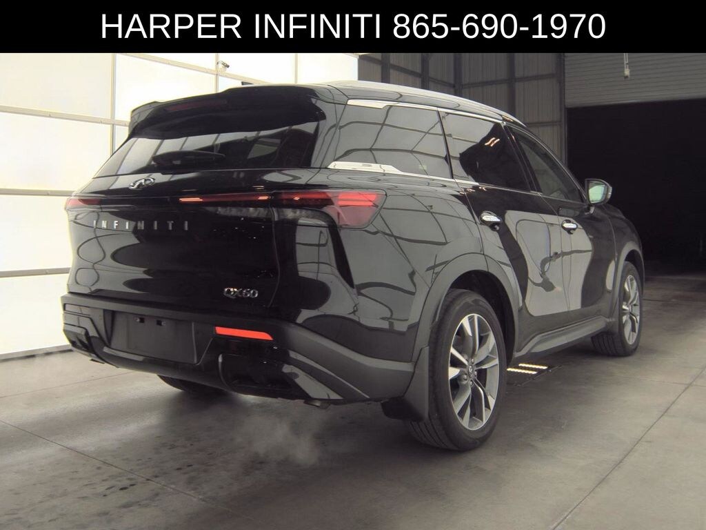 Harper INFINITI is pumped up to offer this good-looking 2025 INFINITI QX60 in Mineral Black HARPER INFINITI believes in the quality of the vehicles we sell so well that we provide an UNLIMITED MILES, POWERTRAIN WARRANTY on every new and qualifying pre-owned vehicle it sells!!! This warranty is good at any ASE certified shop in the 48 continental United States!! Check out all these great options 17 Speakers, 3rd row seats: bench, 4-Wheel Disc Brakes, ABS brakes, Air Conditioning, Alloy wheels, AM/FM radio: SiriusXM, Anti-whiplash front head restraints, Apple CarPlay/Android Auto, Auto High-beam Headlights, Auto tilt-away steering wheel, Auto-dimming door mirrors, Auto-dimming Rear-View mirror, Automatic temperature control, Bose Performance Series 17-Speaker Sound System, Brake assist, Bumpers: body-color, Climate Controlled Front Bucket Seats, Delay-off headlights, Driver door bin, Driver vanity mirror, Dual front impact airbags, Dual front side impact airbags, Electronic Stability Control, Emergency communication system: INFINITI InTouch, Exterior Parking Camera Rear, Four wheel independent suspension, Front anti-roll bar, Front Bucket Seats, Front Center Armrest, Front dual zone A/C, Front reading lights, Fully automatic headlights, Garage door transmitter: HomeLink, Heated door mirrors, Heated front seats, Heated rear seats, Heated steering wheel, Illuminated entry, Knee airbag, Leather Shift Knob, Leather steering wheel, Leather-Appointed Seating Surfaces, Low tire pressure warning, Memory seat, Navigation system: INFINITI InTouch Navigation, Occupant sensing airbag, Outside temperature display, Overhead airbag, Overhead console, Panic alarm, Passenger door bin, Passenger vanity mirror, Power door mirrors, Power driver seat, Power Liftgate, Power moonroof, Power passenger seat, Power steering, Power windows, Radio data system, Radio: Bose Performance Series, Rain sensing wipers, Rear air conditioning, Rear anti-roll bar, Rear reading lights, Rear seat center armrest, Rear side impact airbag, Rear window defroster, Rear window wiper, Reclining 3rd row seat, Remote keyless entry, Security system, Speed control, Speed-sensing steering, Speed-Sensitive Wipers, Split folding rear seat, Spoiler, Steering wheel memory, Steering wheel mounted audio controls, Tachometer, Telescoping steering wheel, Tilt steering wheel, Traction control, Trip computer, Turn signal indicator mirrors, Variably intermittent wipers, Ventilated front seats, and Wheels: 20" x 8J Sporty Machined Aluminum Alloy.