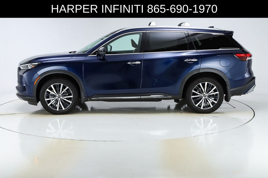 Harper INFINITI is proud to offer this outstanding 2025 INFINITI QX60 in Grand Blue HARPER INFINITI believes in the quality of the vehicles we sell so well that we provide an UNLIMITED MILES, POWERTRAIN WARRANTY on every new and qualifying pre-owned vehicle it sells!!! This warranty is good at any ASE certified shop in the 48 continental United States!! Check out all these great options Cargo Package, Navigation system: INFINITI InTouch Navigation, 17 Speakers, 3rd row seats: bench, 4-Wheel Disc Brakes, ABS brakes, Air Conditioning, Alloy wheels, AM/FM radio: SiriusXM, Auto High-beam Headlights, Auto tilt-away steering wheel, Auto-dimming door mirrors, Auto-dimming Rear-View mirror, Automatic temperature control, Brake assist, Delay-off headlights, Driver door bin, Driver vanity mirror, Dual front impact airbags, Dual front side impact airbags, Electronic Stability Control, Exterior Parking Camera Rear, Four wheel independent suspension, Front anti-roll bar, Front Bucket Seats, Front dual zone A/C, Front reading lights, Fully automatic headlights, Garage door transmitter: HomeLink, Heated door mirrors, Heated front seats, Heated rear seats, Heated steering wheel, Illuminated entry, Knee airbag, Leather Shift Knob, Leather steering wheel, Leather-Appointed Seating Surfaces, Low tire pressure warning, Memory seat, Occupant sensing airbag, Outside temperature display, Overhead airbag, Overhead console, Panic alarm, Passenger door bin, Passenger vanity mirror, Power door mirrors, Power driver seat, Power Liftgate, Power moonroof, Power passenger seat, Power steering, Power windows, Radio data system, Rain sensing wipers, Rear air conditioning, Rear anti-roll bar, Rear reading lights, Rear side impact airbag, Rear window defroster, Rear window wiper, Reclining 3rd row seat, Remote keyless entry, Security system, Speed control, Speed-sensing steering, Speed-Sensitive Wipers, Split folding rear seat, Spoiler, Steering wheel memory, Steering wheel mounted audio controls, Tachometer, Telescoping steering wheel, Tilt steering wheel, Traction control, Trip computer, Turn signal indicator mirrors, Variably intermittent wipers, and Ventilated front seats.