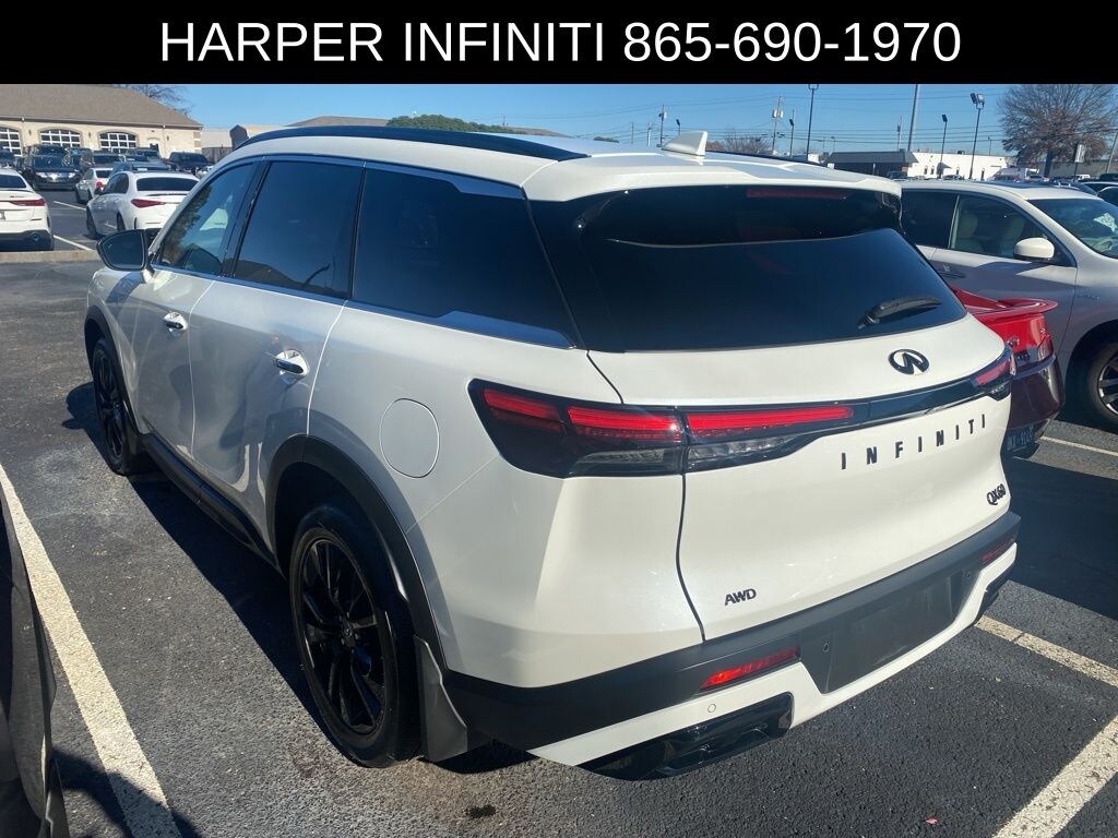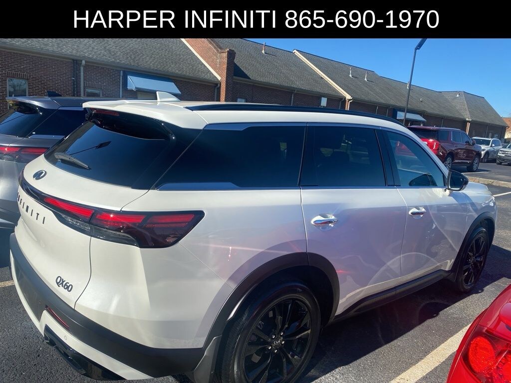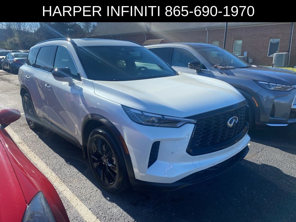 Harper INFINITI is very proud to offer this wonderful 2025 INFINITI QX60 in Majestic White HARPER INFINITI believes in the quality of the vehicles we sell so well that we provide an UNLIMITED MILES, POWERTRAIN WARRANTY on every new and qualifying pre-owned vehicle it sells!!! This warranty is good at any ASE certified shop in the 48 continental United States!! Check out all these great options 3rd row seats: bench, 4-Wheel Disc Brakes, ABS brakes, Air Conditioning, Alloy wheels, AM/FM radio: SiriusXM, Auto High-beam Headlights, Auto tilt-away steering wheel, Auto-dimming Rear-View mirror, Automatic temperature control, Brake assist, Delay-off headlights, Driver door bin, Driver vanity mirror, Dual front impact airbags, Dual front side impact airbags, Electronic Stability Control, Exterior Parking Camera Rear, Four wheel independent suspension, Front anti-roll bar, Front Bucket Seats, Front dual zone A/C, Front reading lights, Fully automatic headlights, Garage door transmitter: HomeLink, Heated door mirrors, Heated front seats, Heated rear seats, Heated steering wheel, Illuminated entry, Knee airbag, Leather Shift Knob, Leather steering wheel, Leather-Appointed Seating Surfaces, Low tire pressure warning, Memory seat, Navigation system: INFINITI InTouch Navigation, Occupant sensing airbag, Outside temperature display, Overhead airbag, Overhead console, Panic alarm, Passenger door bin, Passenger vanity mirror, Power door mirrors, Power driver seat, Power Liftgate, Power moonroof, Power passenger seat, Power steering, Power windows, Radio data system, Rain sensing wipers, Rear air conditioning, Rear anti-roll bar, Rear reading lights, Rear side impact airbag, Rear window defroster, Rear window wiper, Reclining 3rd row seat, Remote keyless entry, Security system, Speed control, Speed-sensing steering, Speed-Sensitive Wipers, Split folding rear seat, Spoiler, Steering wheel memory, Steering wheel mounted audio controls, Tachometer, Telescoping steering wheel, Tilt steering wheel, Traction control, Trip computer, Turn signal indicator mirrors, and Variably intermittent wipers.