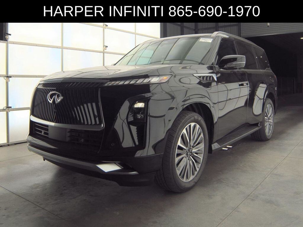 Harper INFINITI is excited to offer this handsome 2025 INFINITI QX80 in Black Obsidian HARPER INFINITI believes in the quality of the vehicles we sell so well that we provide an UNLIMITED MILES, POWERTRAIN WARRANTY on every new and qualifying pre-owned vehicle it sells!!! This warranty is good at any ASE certified shop in the 48 continental United States!! Check out all these great options 14 Speakers, 3rd row seats: bench, 4-Wheel Disc Brakes, ABS brakes, Adaptive suspension, Air Conditioning, Alloy wheels, AM/FM radio: SiriusXM with 360L, Anti-whiplash front head restraints, Apple CarPlay/Android Auto, Audio memory, Auto High-beam Headlights, Auto tilt-away steering wheel, Auto-dimming door mirrors, Auto-dimming Rear-View mirror, Auto-leveling suspension, Automatic temperature control, Brake assist, Bumpers: body-color, Climate Controlled Front Bucket Seats, Compass, Delay-off headlights, Driver door bin, Driver vanity mirror, Dual front impact airbags, Dual front side impact airbags, Electronic Stability Control, Emergency communication system: INFINITI InTouch, Four wheel independent suspension, Front anti-roll bar, Front Bucket Seats, Front Center Armrest, Front dual zone A/C, Front reading lights, Fully automatic headlights, Garage door transmitter: myQ Connected Garage, Heads-Up Display, Heated door mirrors, Heated front seats, Heated rear seats, Heated steering wheel, HVAC memory, Illuminated entry, Knee airbag, Leather Seating Surfaces, Leather steering wheel, Low tire pressure warning, Memory seat, Navigation system: Google Built-in, Occupant sensing airbag, Outside temperature display, Overhead airbag, Overhead console, Panic alarm, Passenger door bin, Passenger vanity mirror, Power door mirrors, Power driver seat, Power Liftgate, Power moonroof, Power passenger seat, Power steering, Power windows, Radio data system, Radio: Klipsch Premium Audio System w/14 Speakers, Rain sensing wipers, Rear air conditioning, Rear anti-roll bar, Rear reading lights, Rear seat center armrest, Rear window defroster, Rear window wiper, Reclining 3rd row seat, Remote keyless entry, Security system, Speed control, Speed-sensing steering, Split folding rear seat, Spoiler, Steering wheel memory, Steering wheel mounted audio controls, Tachometer, Telescoping steering wheel, Tilt steering wheel, Traction control, Trip computer, Turn signal indicator mirrors, Variably intermittent wipers, Ventilated front seats, Ventilated rear seats, and Wheels: 22" x 8" Cast Aluminum Alloy.