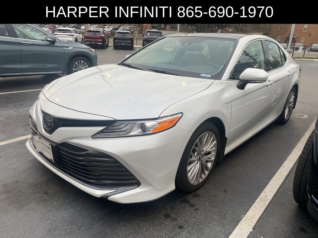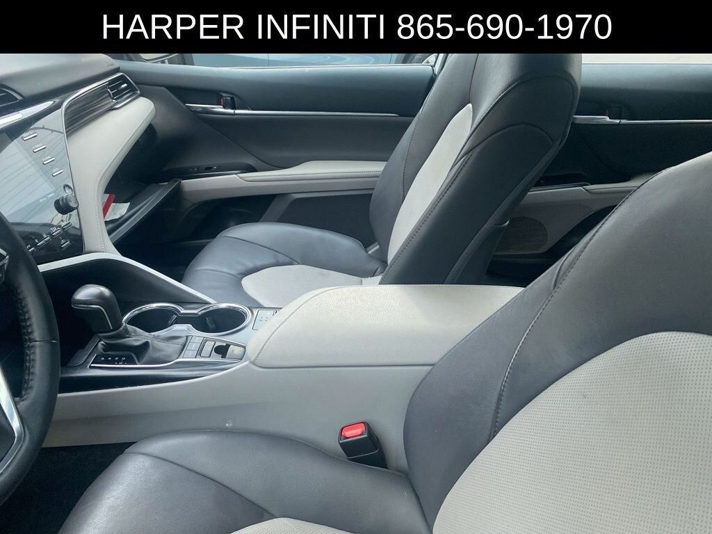 Harper INFINITI is pumped up to offer this superb-looking 2020 Toyota Camry in Wind Chill Pearl HARPER INFINITI believes in the quality of the vehicles we sell so well that we provide an UNLIMITED MILES, POWERTRAIN WARRANTY on every new and qualifying pre-owned vehicle it sells!!! This warranty is good at any ASE certified shop in the 48 continental United States!! Check out all these great options Navigation Package (Radio: AM/FM/HD Premium Audio w/JBL w/Clari-Fi), 4-Wheel Disc Brakes, 6 Speakers, ABS brakes, Air Conditioning, Alloy wheels, AM/FM radio: SiriusXM, Apple CarPlay/Android Auto, Auto High-beam Headlights, Auto-dimming Rear-View mirror, Automatic temperature control, Brake assist, Bumpers: body-color, CD player, Compass, Delay-off headlights, Driver door bin, Driver vanity mirror, Dual front impact airbags, Dual front side impact airbags, Electronic Stability Control, Emergency communication system: Safety Connect with 1-year trial, Exterior Parking Camera Rear, Four wheel independent suspension, Front anti-roll bar, Front Bucket Seats, Front Center Armrest, Front dual zone A/C, Front reading lights, Fully automatic headlights, Garage door transmitter: HomeLink, Heated door mirrors, Heated front seats, Illuminated entry, Knee airbag, Leather Seat Trim, Leather Shift Knob, Low tire pressure warning, Multi-Stage Heated Front Bucket Seats, Occupant sensing airbag, Outside temperature display, Overhead airbag, Overhead console, Panic alarm, Panoramic Roof, Passenger door bin, Passenger vanity mirror, Power door mirrors, Power driver seat, Power passenger seat, Power steering, Power windows, Radio data system, Radio: AM/FM/HD Audio Plus, Rear anti-roll bar, Rear reading lights, Rear seat center armrest, Rear side impact airbag, Rear window defroster, Remote keyless entry, Security system, Speed control, Speed-sensing steering, Split folding rear seat, Steering wheel mounted audio controls, Tachometer, Telescoping steering wheel, Tilt steering wheel, Traction control, Trip computer, Turn signal indicator mirrors, Variably intermittent wipers, and Wheels: 8.0J x 18" Chrome Machined-Finish Alloy.